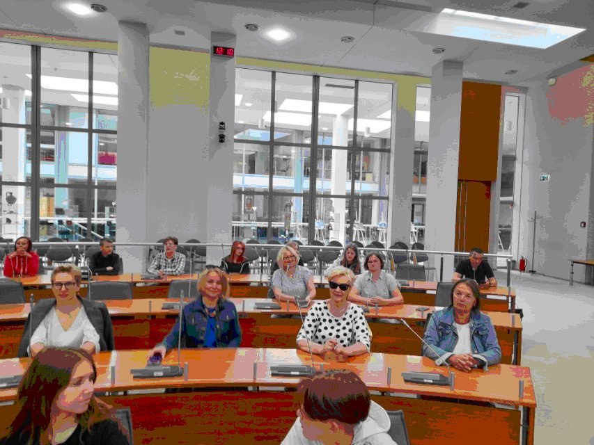 Zostaliśmy również zaproszeni przez Radną Rady Miejskiej Wilna panią Renatę Cytacką na spotkanie z Dyrektorami i Nauczycielami polskich szkół i placówek, gdzie dzieliliśmy się doświadczeniami. O działalności naszego Stowarzyszenia opowiedziała Prezes – Pani Antonina Kużaj. Rozmowy trwały w Sali Sesyjnej Rady Miejskiej Wilna.
